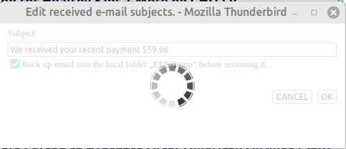 But upon trying to edit an email subject line, EES didn't work and the little screen that came up to do the job just kept scrolling (see screenshot). Any ideas how to get EES to work?