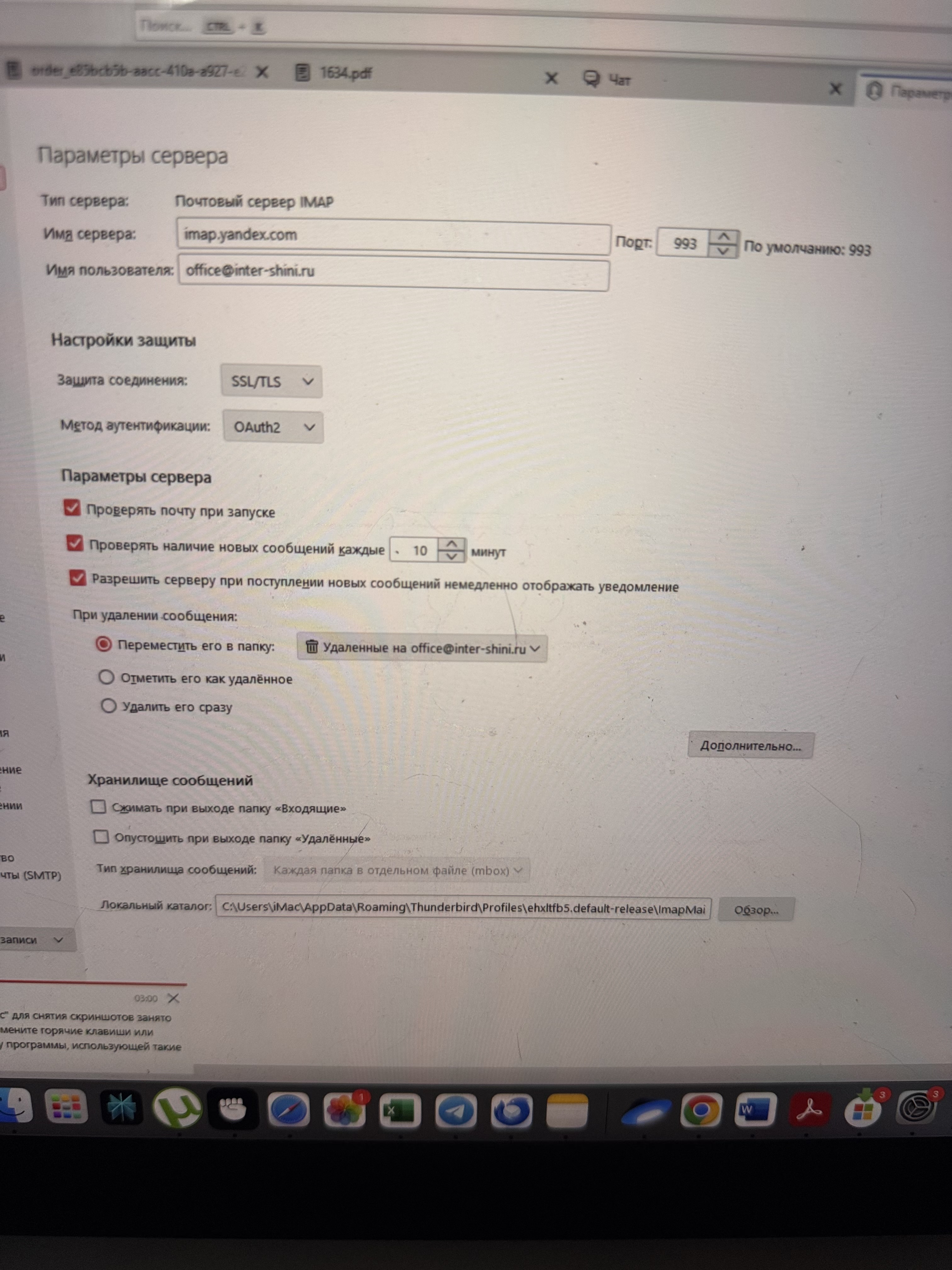 We are using Mozilla Thunderbird on a Windows-based computer to manage our corporate email hosted on the Yandex domain.