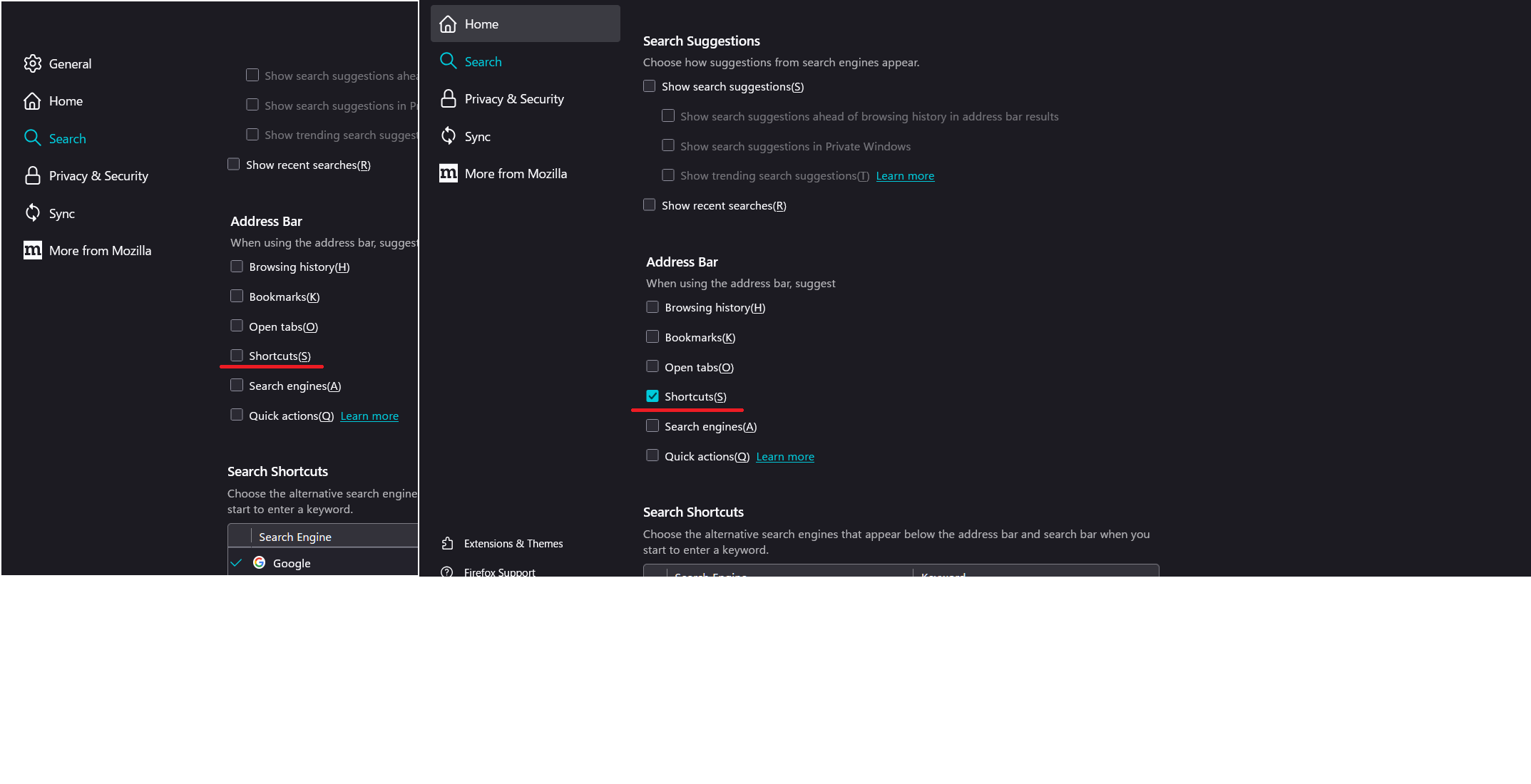 I read that. It says "You can delete it by deleting the shortcut from the new tab," but where is that? Should I check the Firefox settings? If you change the settings as shown in the image, it will be hidden from the address bar. I want to delete it completely. Sorry for the lack of explanation. Isn't it the second picture?