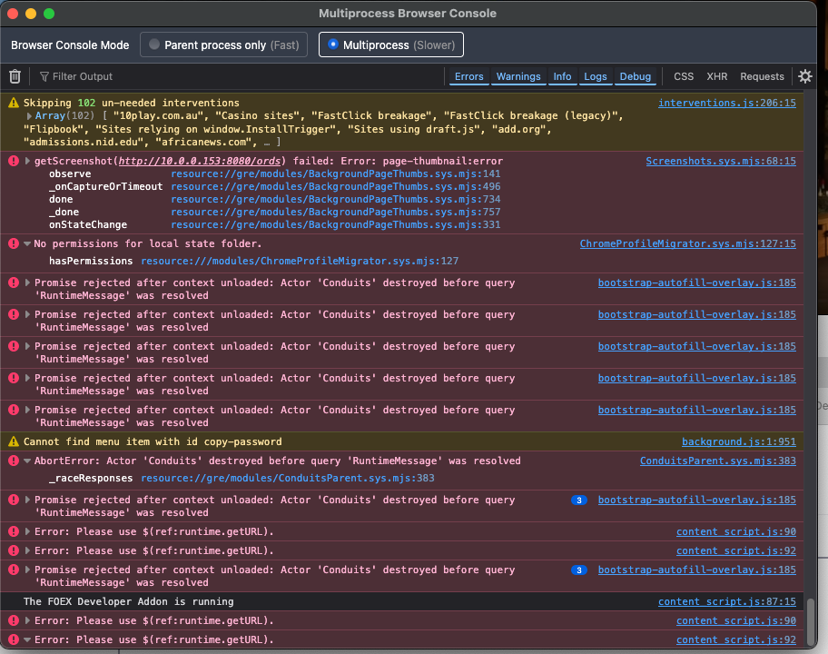 This add-in has been working without any problems until I upgraded to Sequoia 15.6.1 I also run Parallels on my Mac (M1) with Windows 11. So I tried running Firefox with that extension/add-in only too. I am getting the same error as on Mac. So maybe there is something underlying on MacOS which cause the problem.