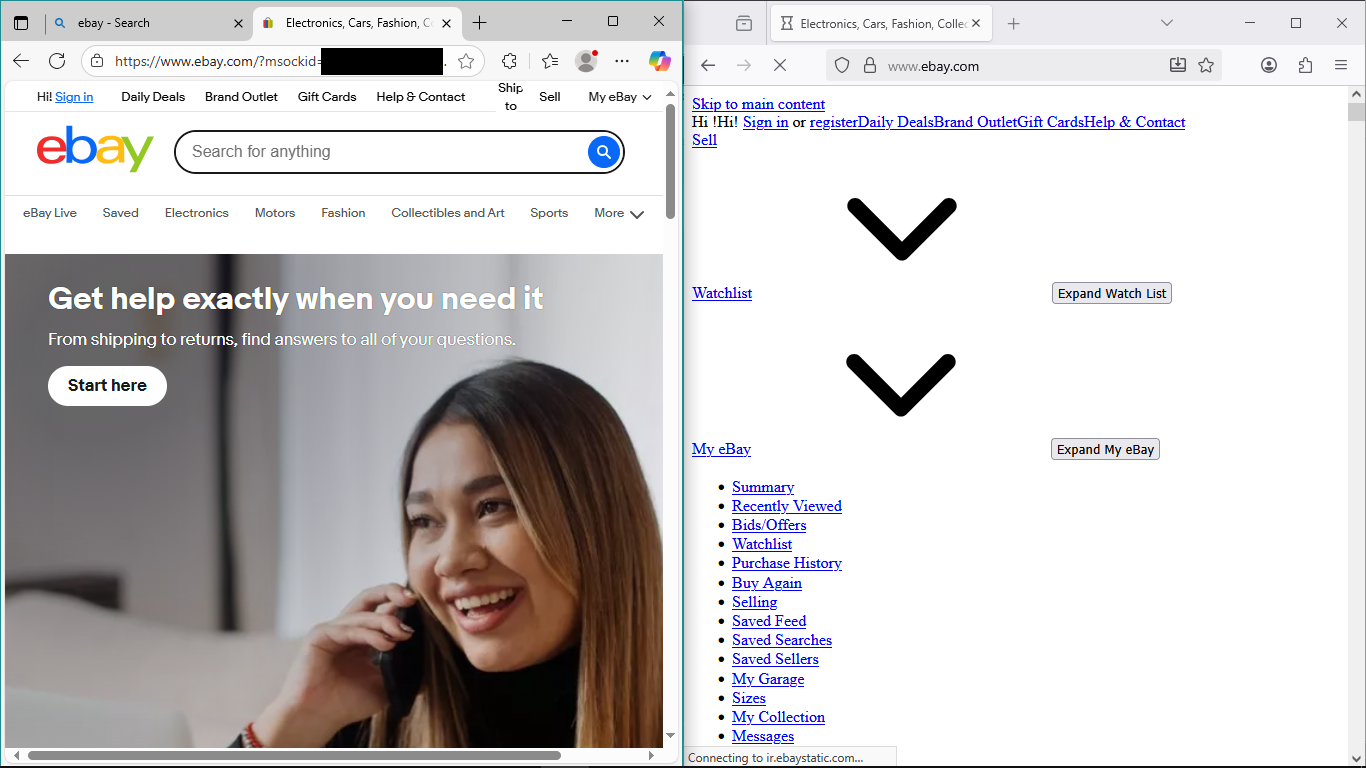Problem loading popular websites e.g. eBay (tried a new "profile" for troubleshooting)