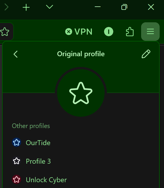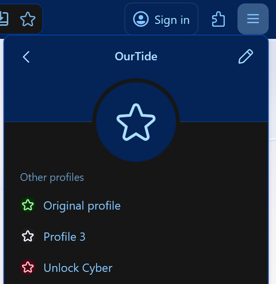 Also, there is another issue, while I can swap between the profiles once I've gone via the OurTide profile where I applied your fix, if I go into Firefox via the notification link, I can't see the updates applied - the profiles selector isn't showing at all, but is there if I click where it should be listed: https://assets-prod.sumo.prod.webservices.mozgcp.net/media/uploads/images/2026-04-02-03-14-26-0aef9e.png