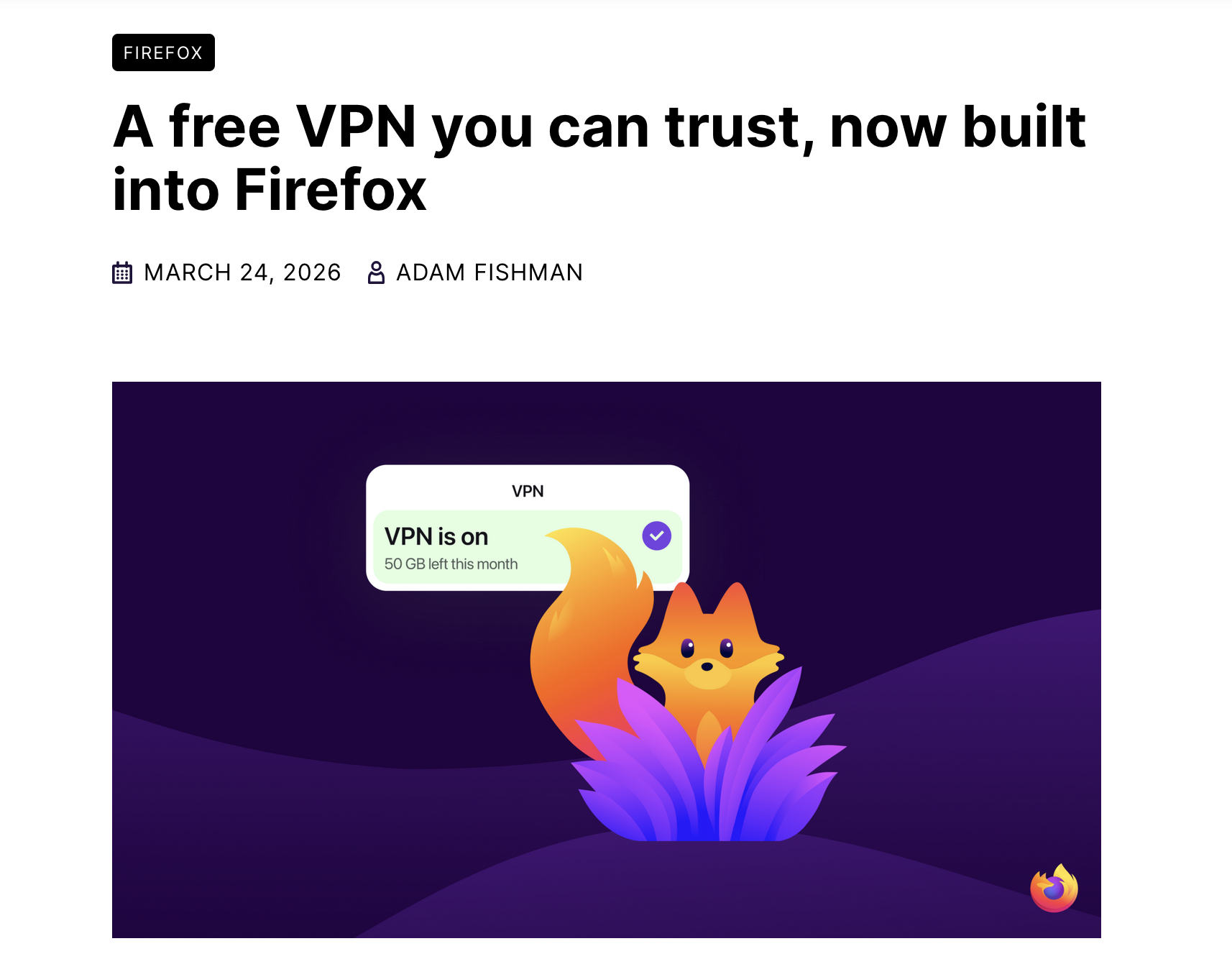Users will have 50 gigabytes of data monthly in the U.S., France, Germany and U.K. to start. Available in Firefox 149 starting March 24.