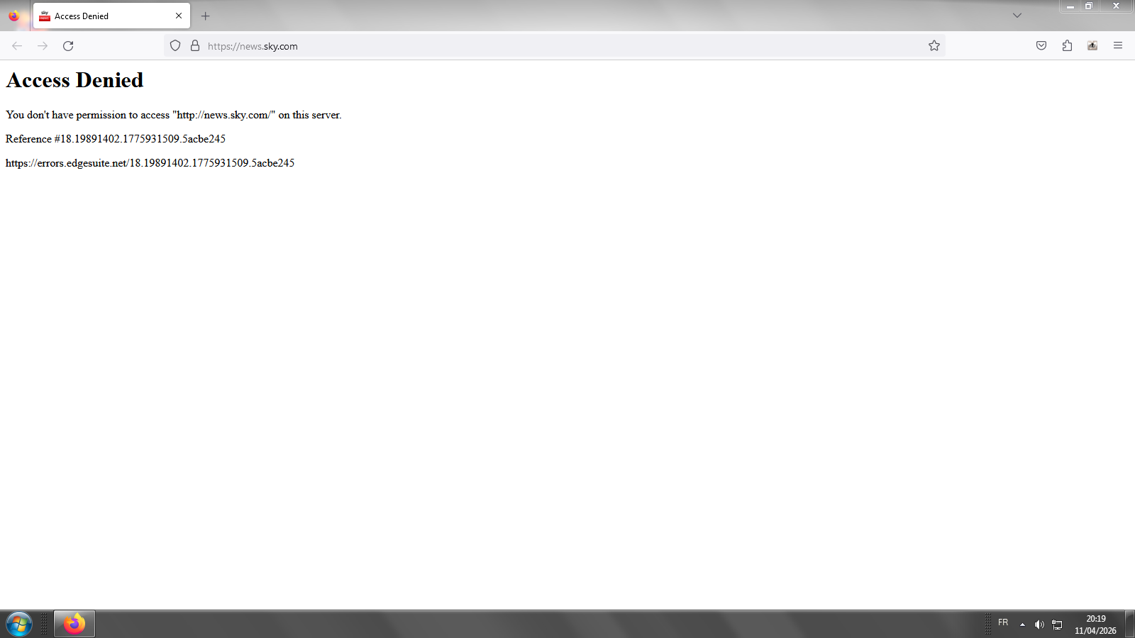 Started a few days ago, I'm getting a Access Denied error on Sky News web site-: