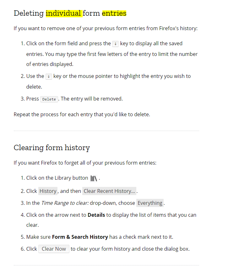 - Note that it will clear your usage history.