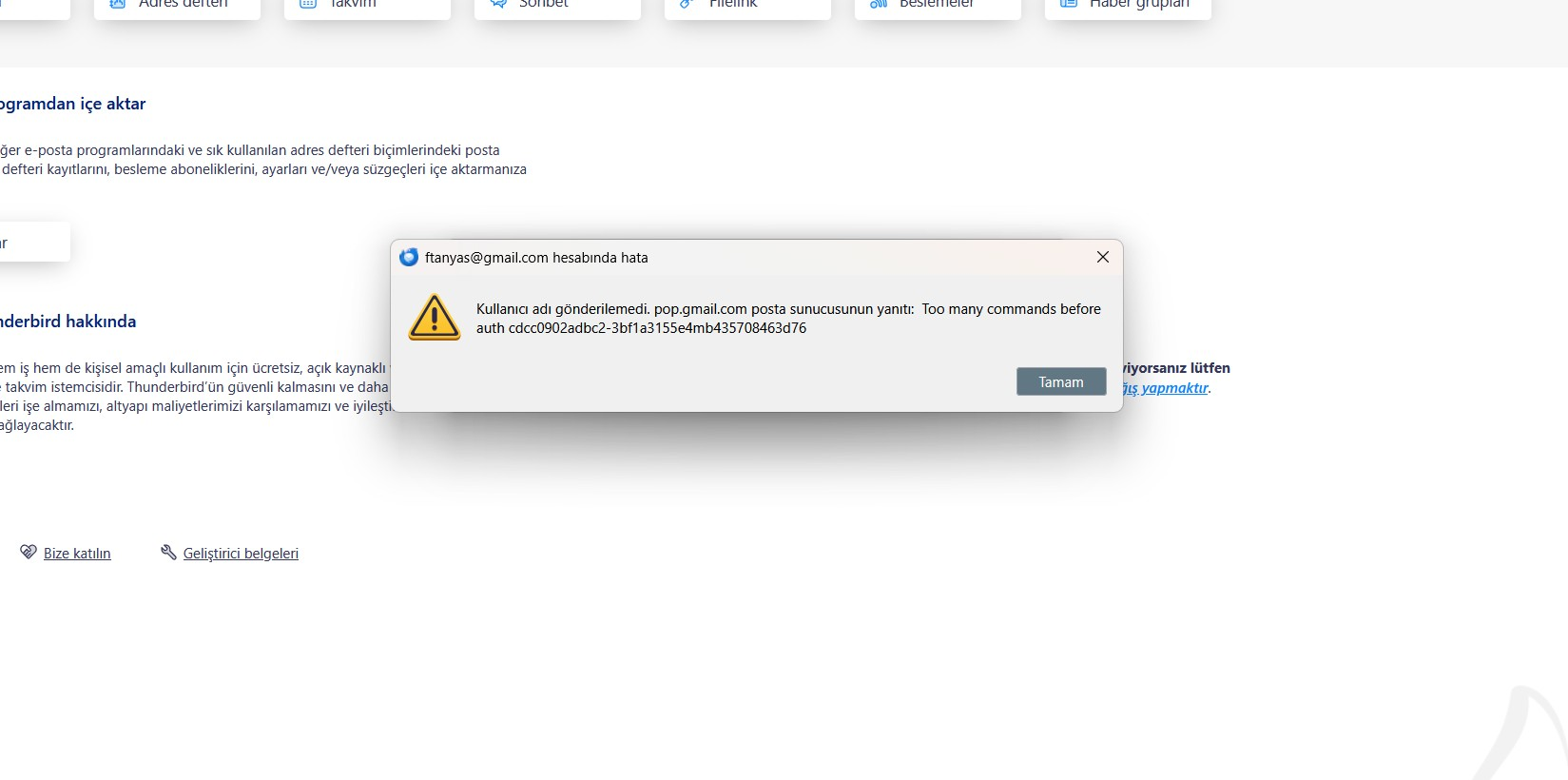 Farklı email programlarında da pop olarak deneme yaptığımda sürekli hata veriyor.Otomatik tanımlamalarda zaten hep imap protokolünü yapılandırıyor.Gmail ayarlarında pop aktif görünüyor öte yandan.Bilemedim sanırım zorla imapa geçeceğim sanki.Google'a da danıştım ama bir yanıt veremediler ne yazık ki.