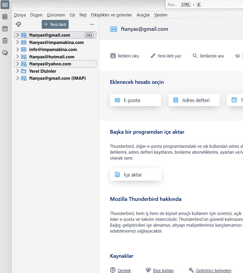 2015 yılından beri işimle ilgili bir email arşivi var.O zamanlar google'dan ilave bir email kapasitesi almamıştım.15GB gibi bir kapasite dolduğunda mecburen sunucudan silmek durumundaydım.Tabi bu durumda emaillerin Thunderbird içerisinde olması gerekiyordu.Sonradan lazım olabilecek yazışmalarım var.Bu nedenle pop protokolünü tercih ettim.Çalışma arkadaşlarım imap kullanıyorlar bu konuları çok bilmiyorlar ama bir email silindiğinde her yerden silindiği için sürekli benden yardım talep ediyorlar.Benim de gmail de pop kullanma sebebim bu.Şimdi 200 gb kapasite kullanıyorum tabi sunucuda yeterince alanım var.Email back up dosyam yaklaşık 85 gb civarında.Bundan sonrası için acaba email yedeğimi Thunderbire yükledikten sonra protokolu imap olarak değişsem bir sıkıntı olur mu?İlginize tekrar çok teşekkür ediyorum bu arada.