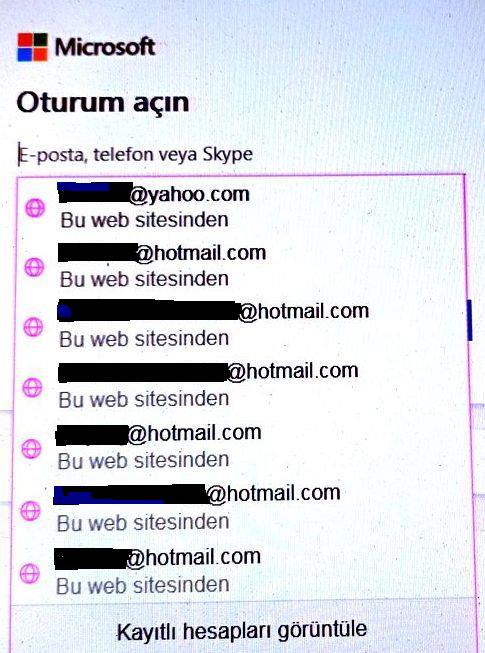 https://login.live.com sitesinde oturum açtığımda kayıtlı olan parolalarımın tamamı görünmüyor