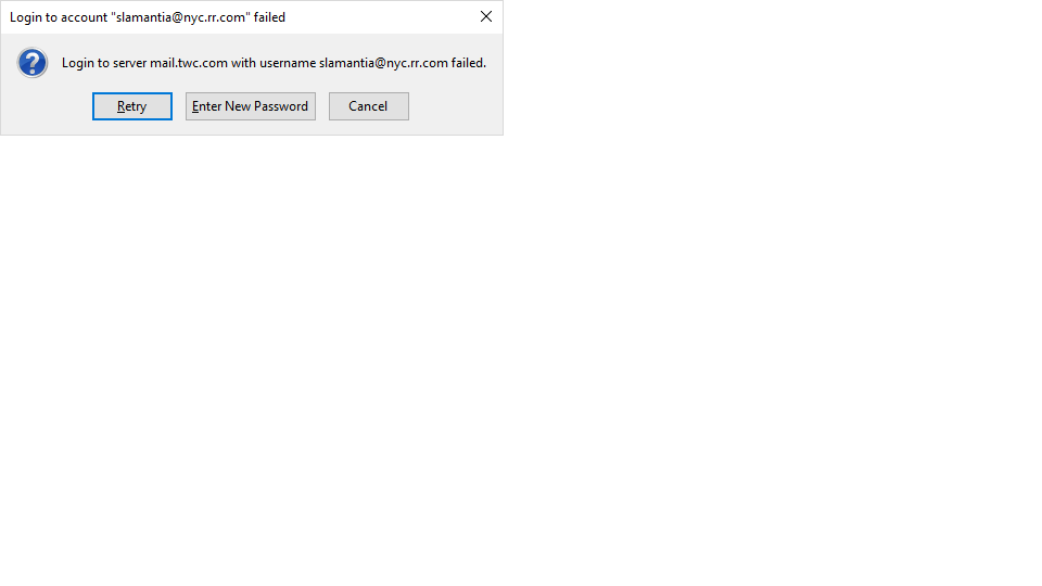 Carnot send or receive e-mails.. getting message "Server for account slamantia@nyc.rr.com not authorized for STARTLS