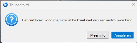 Het certificaat voor imap.scarlet.be komt niet van een vertrouwde bron.