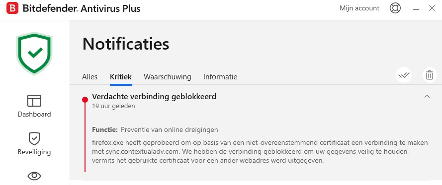Het is blijkbaar Bitdefender die het certificaat niet vertrouwd. (zie schermopname)