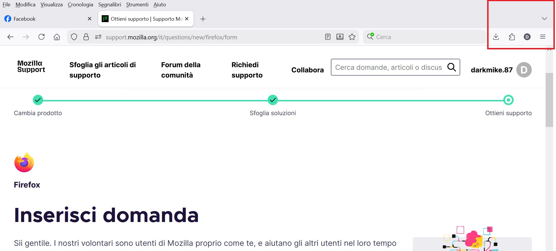Usando "Modalità risoluzione dei problemi" si è risolto, per ora ogni volta che riapro Firefox le icone ci sono. Anche riavviando il PC e riaprendo l'Applicazione sono sempre li, quindi sembra Risolto! Non sapevo di questo passaggio. Grazie mille.