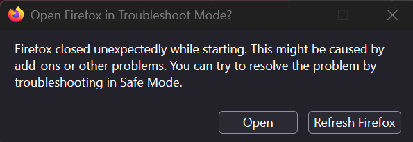 I have tried to launch Firefox a number of times today and every time it has frozen and does not respond. When trying to select the option of opening the software in Troubleshoot mode, once again the software freezes and I am unable to open the software in Troubleshoot mode . I have tried shutting and re-opening both the software and my laptop but this does not resolve the issue. Can you please either resolve the issue of the software freezing or tell me how I can resolve the issue.