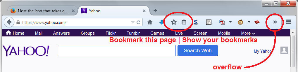 On top right, I used to have an icon that I would click which automatically too the URL of whatever was being viewed and place it into the bookmarks. I lost both icons. How do I get them back?