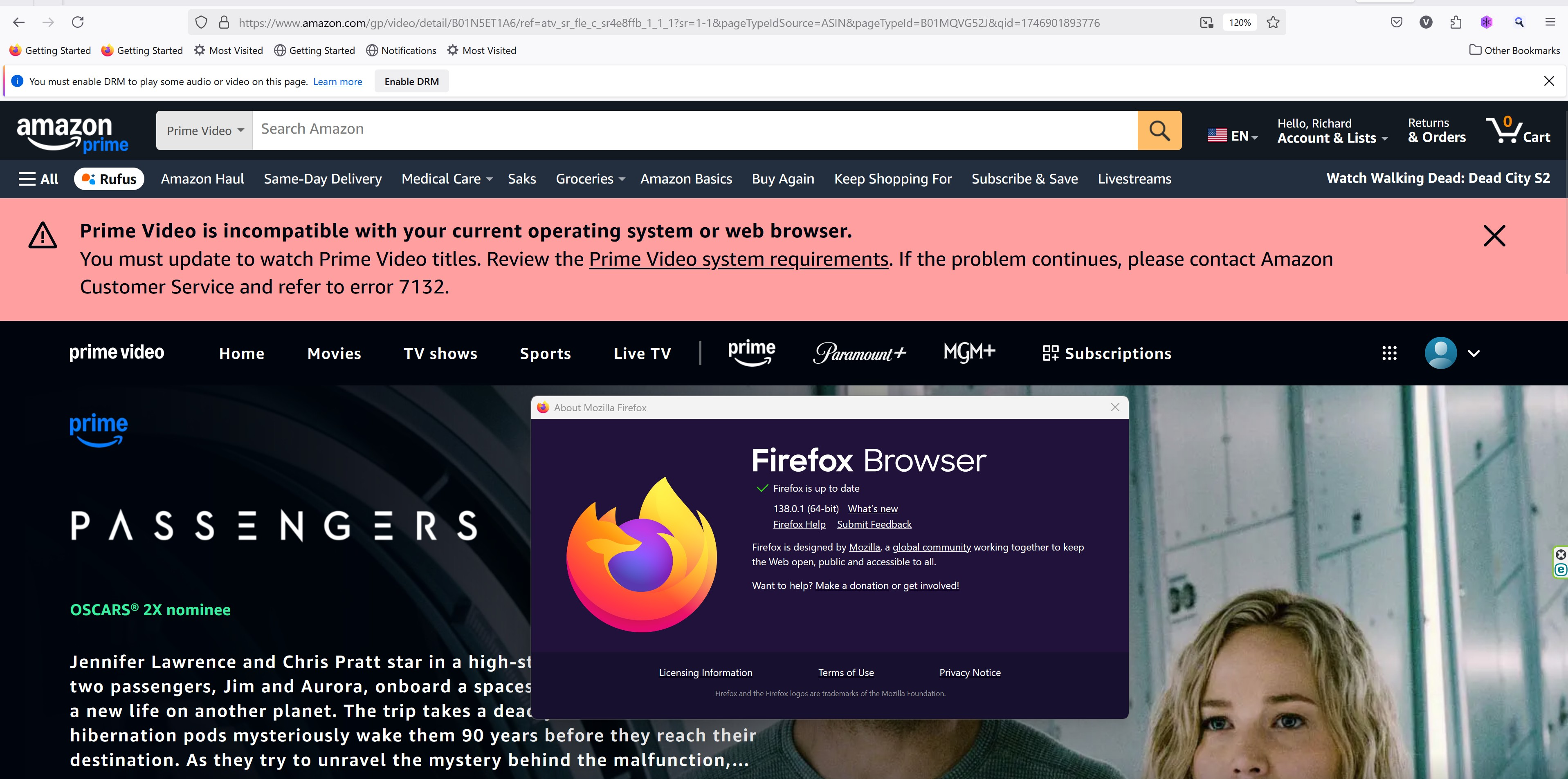 Regarding Amazon Prime, it does require the Widevine DRM plugin and relevant CODECs. Could you check: