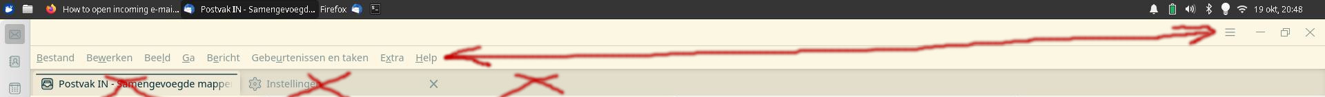 I discovered that on my Azerty-keyboard it is Fn+F8 to get to F8. I never use the function keys, so I didn't know. But why does the content of the e-mail needs to appear in a seperate window (the one below)? I don't have enough space on my screen to see the whole e-mail this way. I would like it to be in the same window, not on my whole screen but just instead of the list of e-mails.