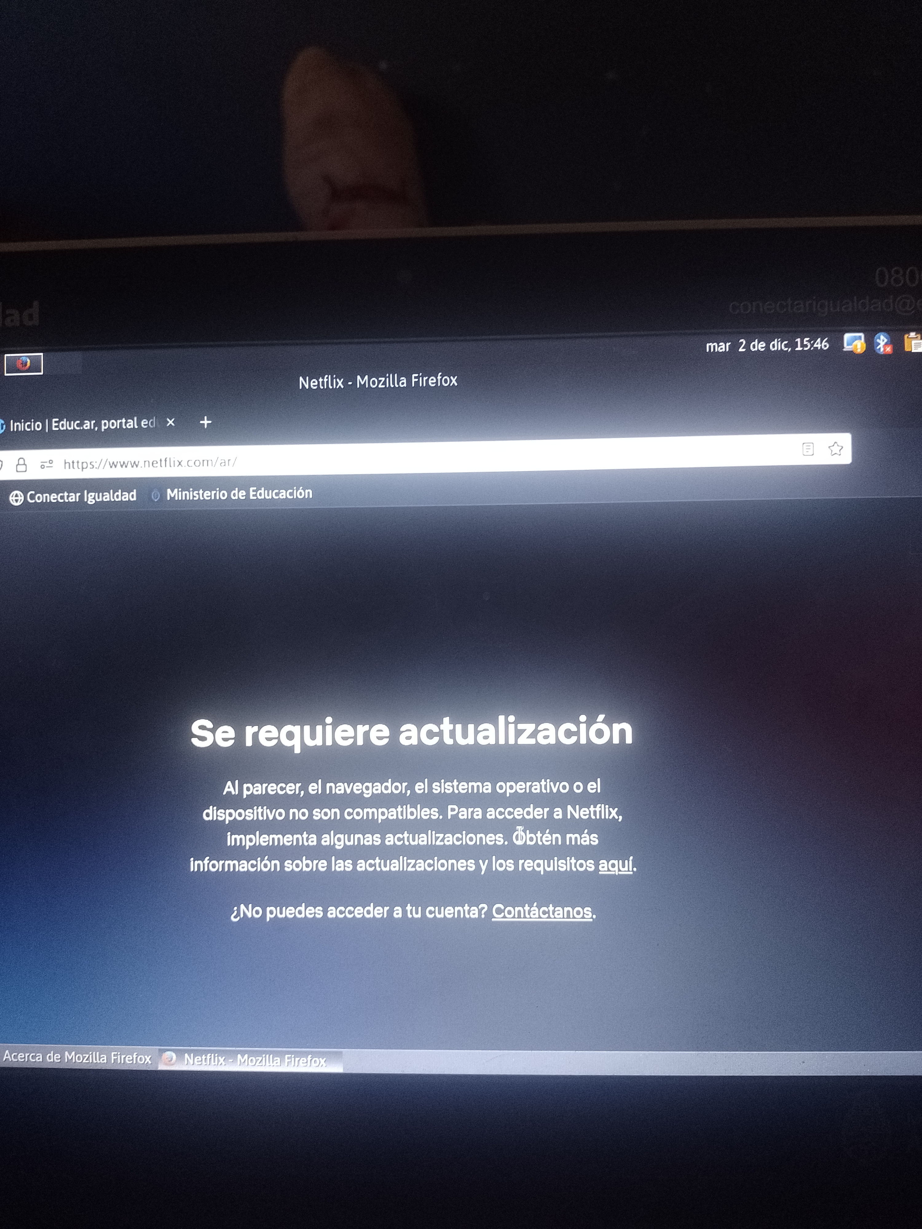 Hola buenas tarde necesito que me ayuden para actualizar Firefox no me deja descargar la aplicación en mí computadora de la Escuela y descargar las aplicaciones y utilizarlas me ayudan porfavor