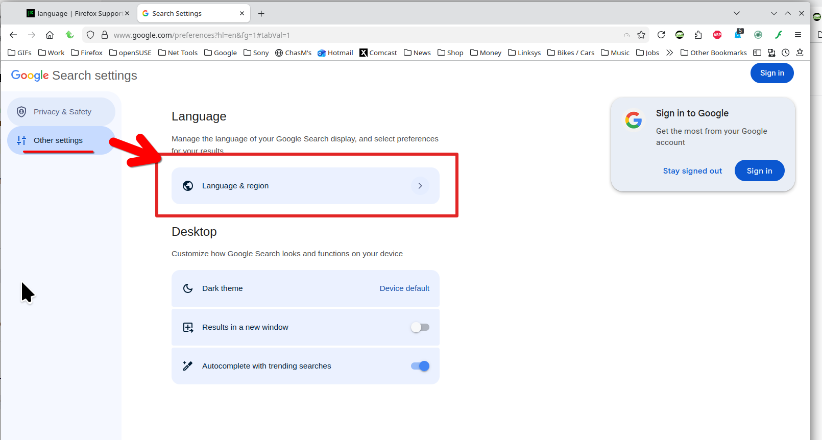 Dear volunteer When I browse with Google: the reults are always Slovenian. What ever I try I cannot change it into English. Thank you. Omer