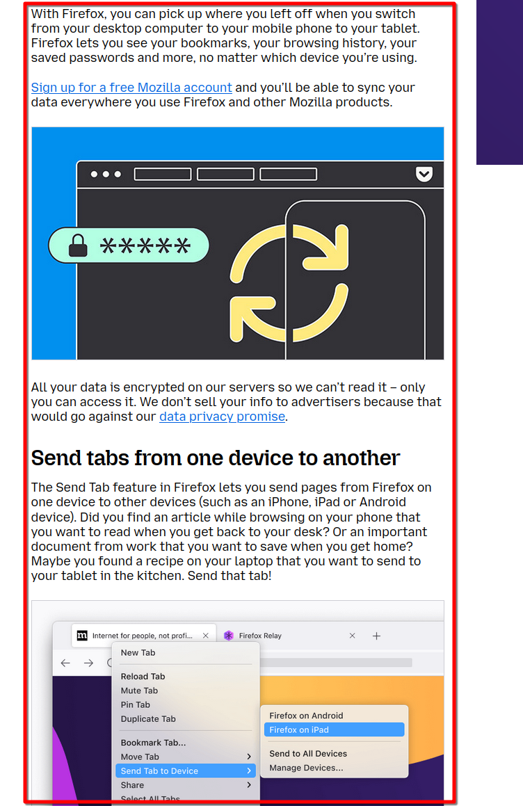 FYI... Firefox Sync IS NOT A DATA BACKUP SERVICE https://support.mozilla.org/en-US/kb/how-do-i-set-sync-my-computer https://support.mozilla.org/en-US/kb/how-do-i-choose-what-information-sync-firefox Sync Firefox data https://support.mozilla.org/en-US/kb/sync https://www.mozilla.org/en-US/firefox/features/sync/ https://hacks.mozilla.org/2018/11/firefox-sync-privacy/ Sync is not a backup tool but it is a good sync/transfer/move tool https://support.mozilla.org/en-US/forums/contributors/707681