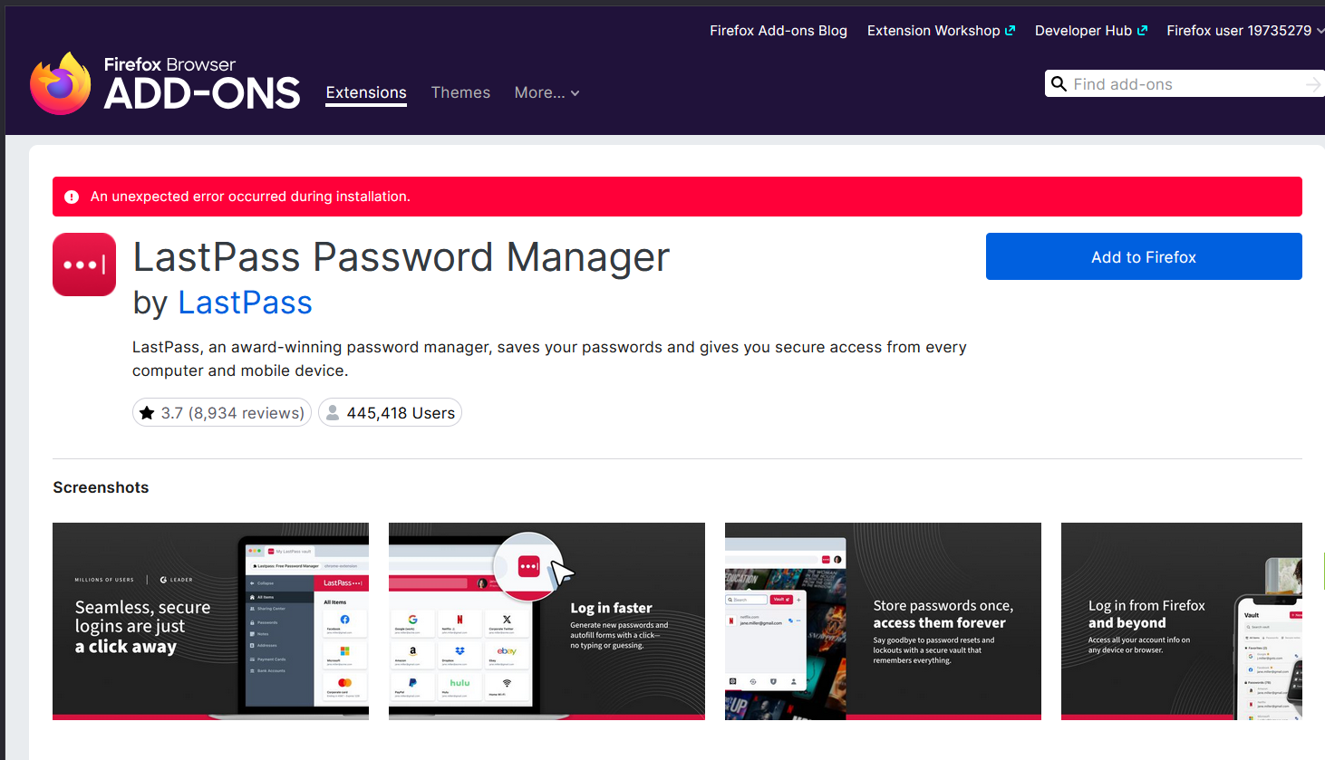 I receive an error when trying to add the extension saying, "An unexpected error occurred during installation."