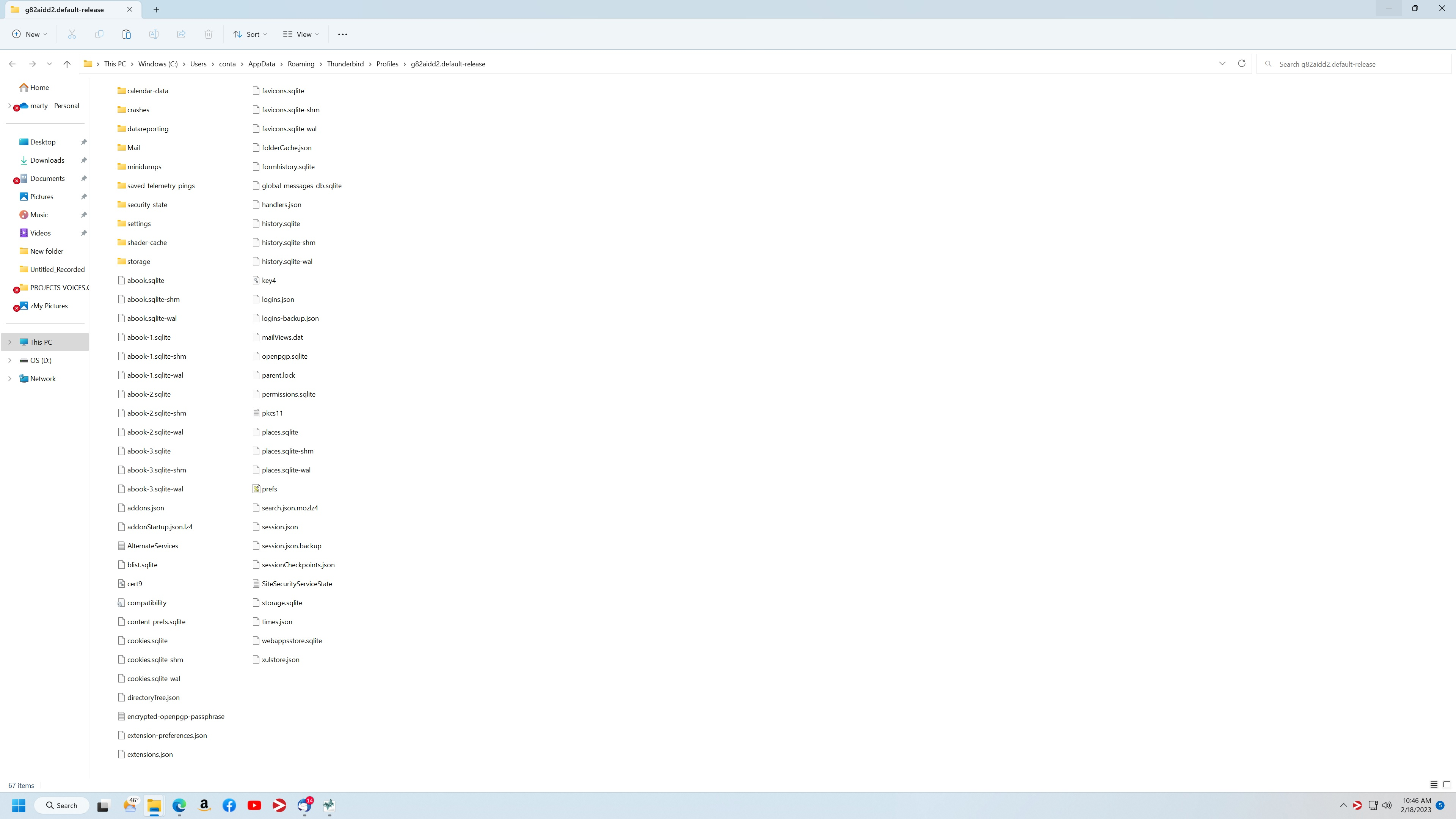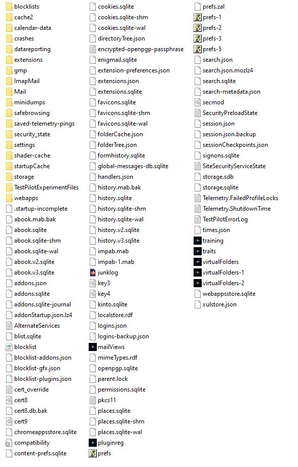 Post a screenshot showing the contents of this "Thunderbird data" folder.