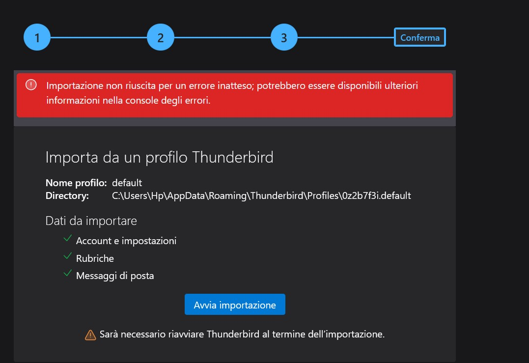 Se visualizzi l'errore della seconda foto, l'importazione non è riuscita quindi potrebbero mancare dei messaggi.