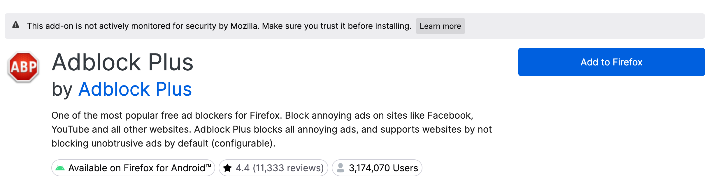 I clicked on this link and all it did was download Firefox again. I had Firefox and still have it but the Adblock Plus icon that was installed on my Firefox is still not there. I had it installed and it disappeared. Firefox didn't just the icon for Adblock Plus. It was shaped like a red stop sign with 6 sides and the initials ABP was inside. The icon is still on my Microsoft edge.