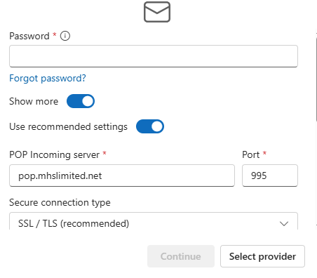 When trying to add this as a POP or IMAP I get an authentication error once applying the incoming/outgoing server and port details.