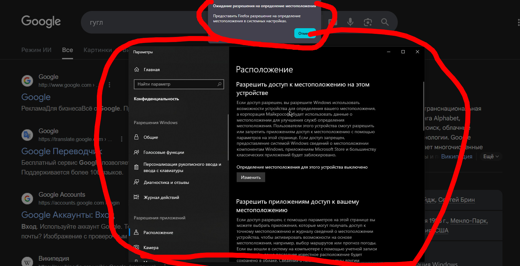 каждый раз как я вписываю что то в строку мне высвечивается вот эта хуйня и открываются каждый раз настройки,это случилось после вашего последнего обновления ,я не собираюсь давать данные о геопозиции. Как отключить это чтоб больше не высвечивалось?