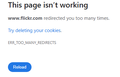 UPDATE After several logins to flickr via the Chrome browser I received the error message shwon in the image. I believe the problem lies with flickr and not Firefox. I am trying to contact flickr admin to report the problem