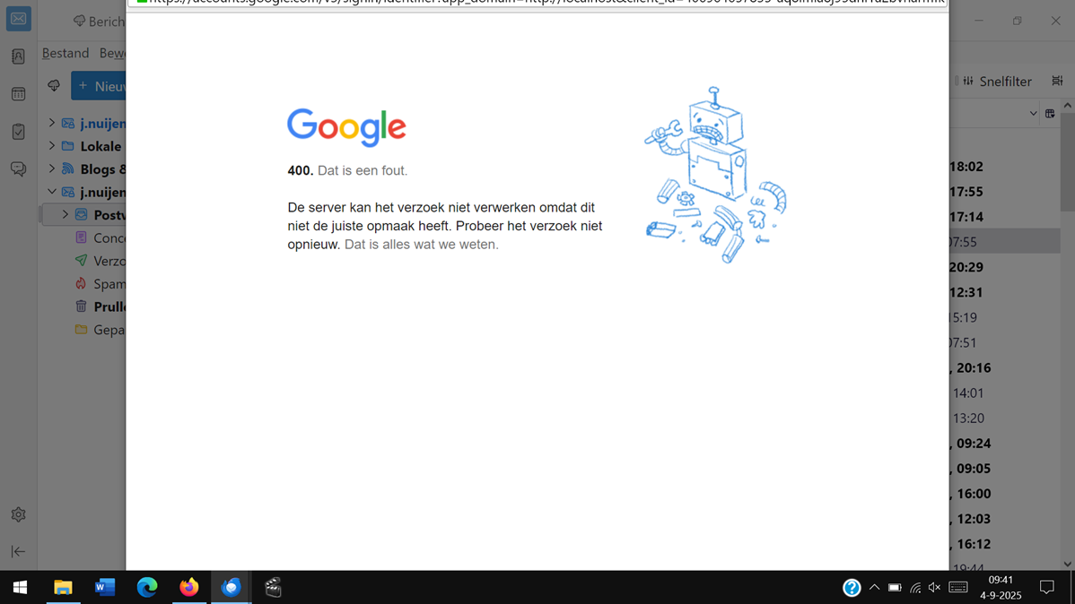 Ik probeer gmail-account te koppelen aan Thunderbird.
