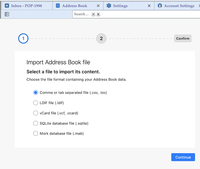 I cannot import my CONTACTS from Win 7 folder to TB contacts folder