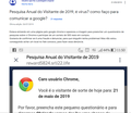 Novo viros fazendo pesquisa Anual do Visitante 2019 e oferecendo R$500 em disconto quando abre um novo site