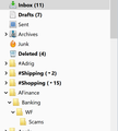 My webail account only displays AFinance/Banking/WF/Scams. No #Finance, no ff1c2bd0 folders.