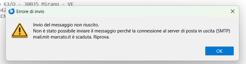 Dopo ultimo aggiornamento, solo per questo account, non è più possibile inviare messaggi in quanto segnala errore connessione al server in uscita (SMTP) scaduta