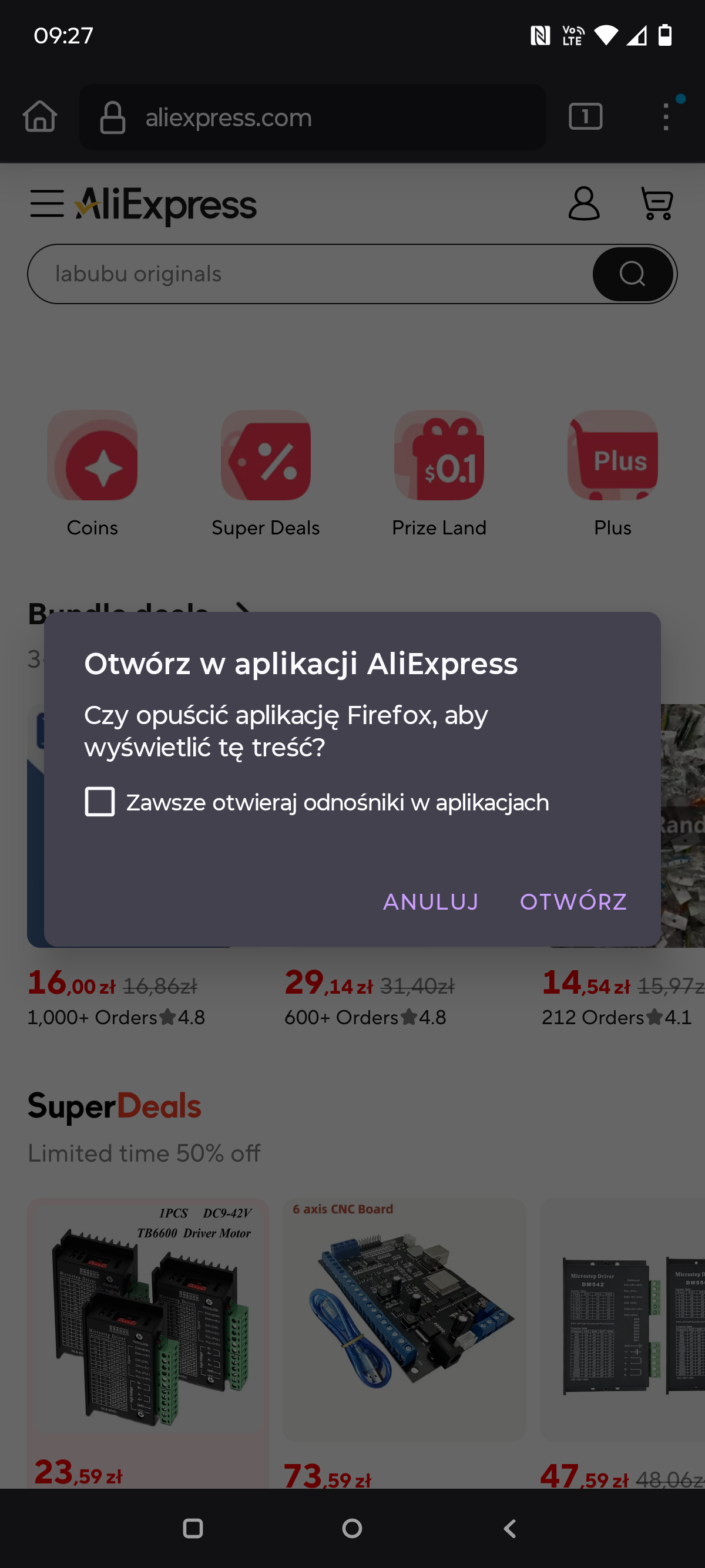 Here’s an example: I have two accounts on AliExpress — one is logged into the app, the other in the web browser! And I absolutely don’t want it to open in the app, because what for???