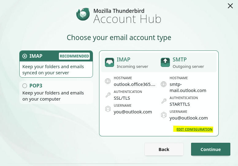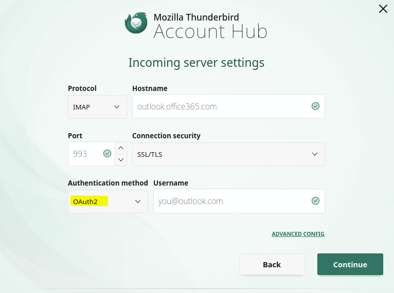 I can’t add my Outlook account to Thunderbird. (accounthub)