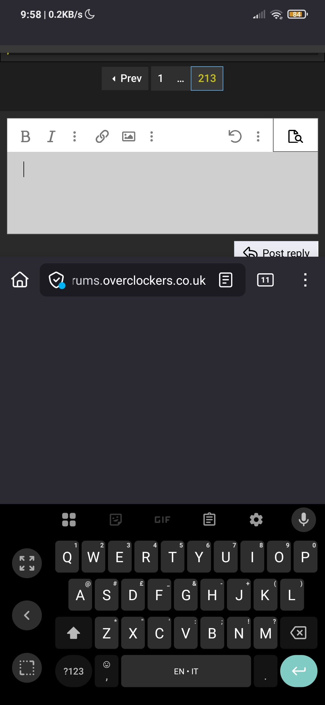 When I try to write a post on https://forums.overclockers.co.uk/ the web browser breaks.