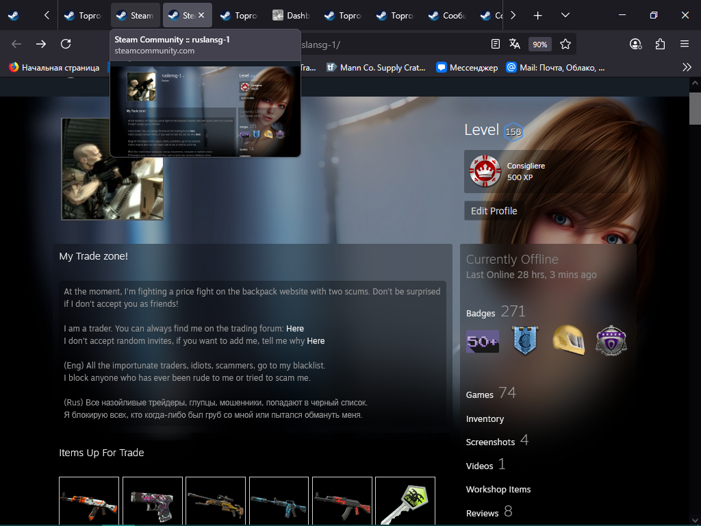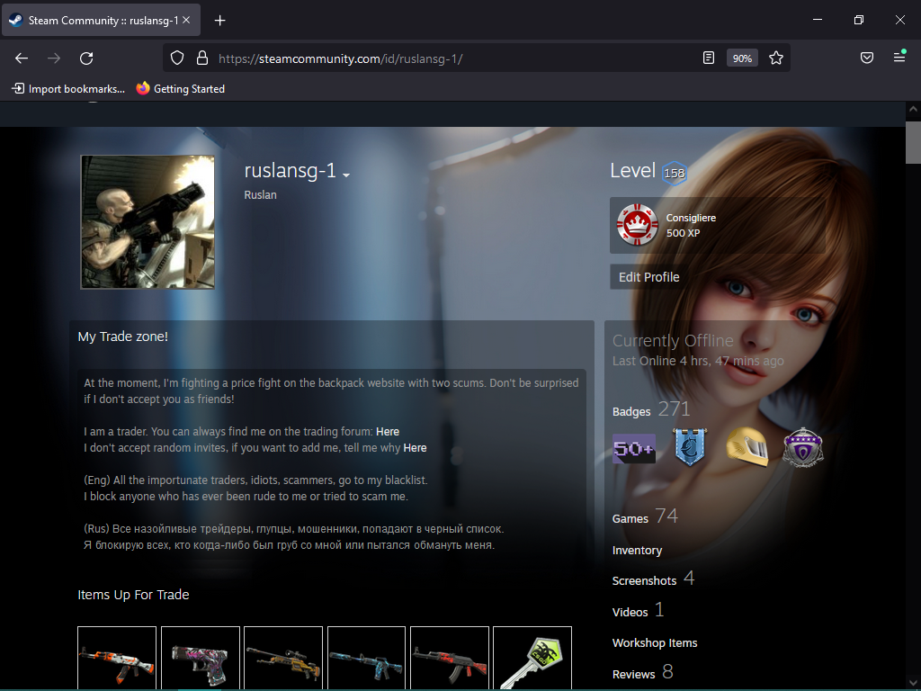 The link to the Steam profile. https://steamcommunity.com/id/ruslansg-1/ Screenshot. https://imgur.com/a/XIT3CBe