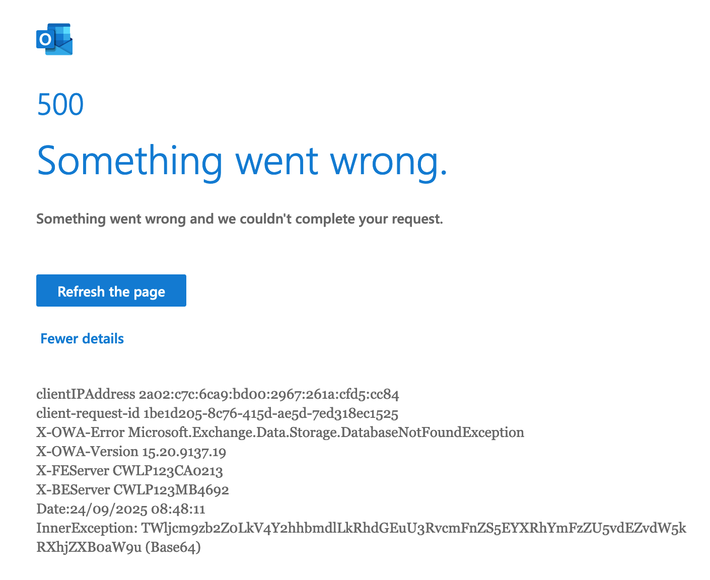 I am unable to get my email to work - when I open Thunderbird I get the message "500 something went wrong and we couldn't complete your request". New emails aren't coming through on my computer, nor can I delete existing emails. I can however still send and receive on my phone, which is weird.