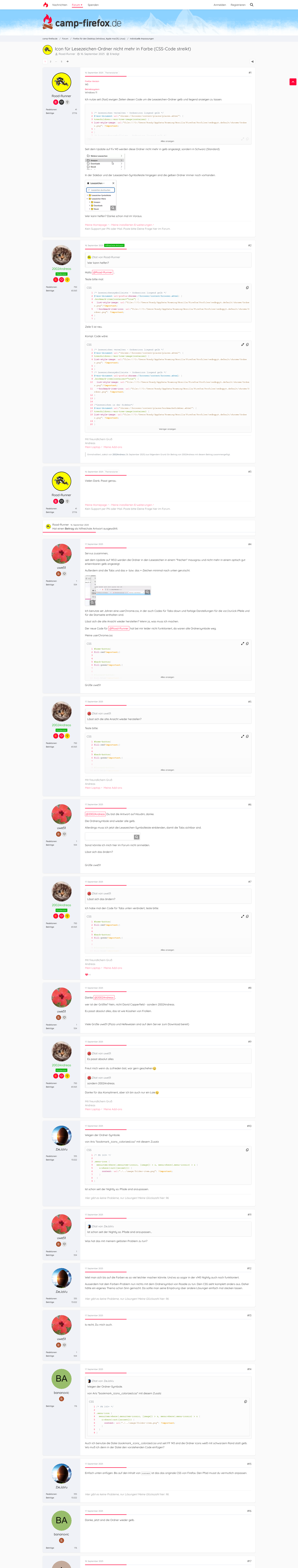 * Lesezeichen verwalten - Ordnericon liegend gelb */ @-moz-document url("chrome://browser/content/places/places.xhtml") { treechildren::-moz-tree-image(container) { list-style-image: url("file:///C:/Users/manag/AppData/Roaming/Mozilla/Firefox/Profiles/x1jkC9cC.Original profile/chrome/testyellowcolor.png") !important; } } /* Lesezeichensymbolleiste - Ordnericon liegend gelb */ @-moz-document url-prefix(chrome://browser/content/browser.xhtml) { .bookmark-item[container="true"] { list-style-image: url("file:///C:/Users/manag/AppData/Roaming/Mozilla/Firefox/Profiles/x1jkC9cC.Original profile/chrome/testyellowcolor.png")!important; --bookmark-item-icon: url("file:///C:/Users/manag/AppData/Roaming/Mozilla/Firefox/Profiles/x1jkC9cC.Original profile/chrome/testyellowcolor.png") !important; } } /*Lesezeichen in der Sidebar*/ @-moz-document url("chrome://browser/content/places/bookmarksSidebar.xhtml") { treechildren::-moz-tree-image(container) { list-style-image: url("file:///C:/Users/manag/AppData/Roaming/Mozilla/Firefox/Profiles/x1jkC9cC.Original profile/chrome/testyellowcolor.png") !important; } }