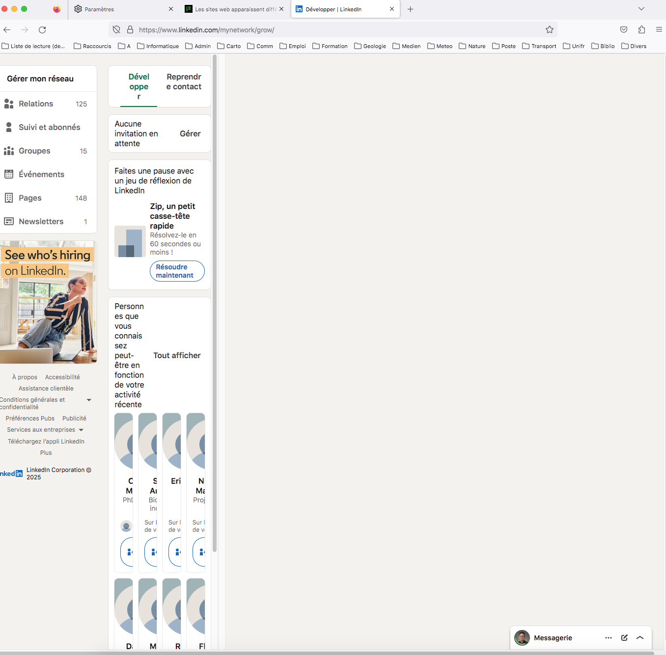 Hello, Since september, 1st, i have a display problem while opening the linkedin tabs. I tried several things to repare it, but nothing is working. I do not know why i have this problem and how to solve it.