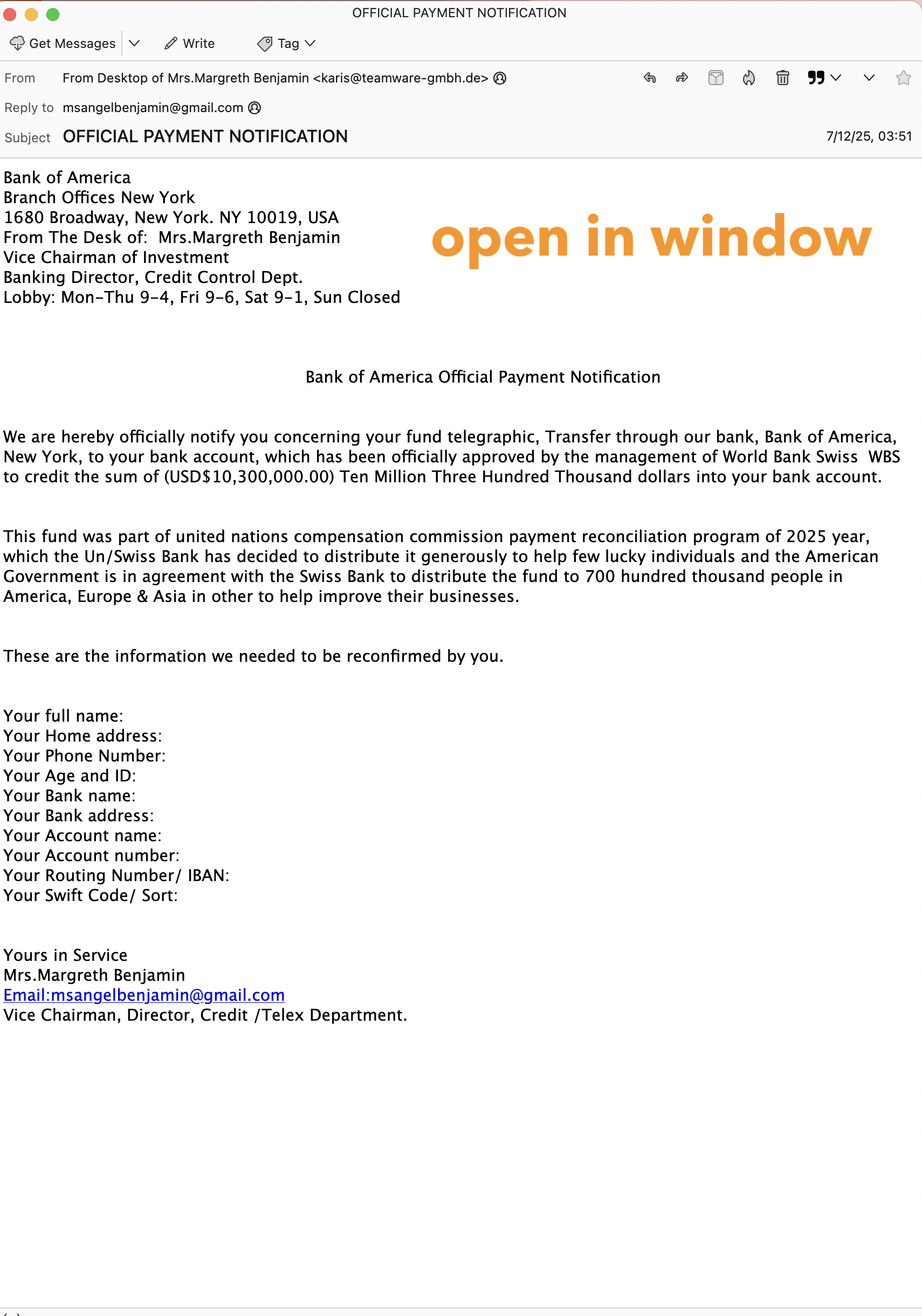 As far as I know it is Thunderbird , the icon is Thunderbird but the format is the same as Yahoo and that is what I don't care for , I like the Thunderbird format of my old computer , when you click an email it opens to a full screen . Yahoo opens to a small window . I downloaded Thunderbird but it behaves just like Yahoo . My older mail carrier ( Frontier / Verizon ) stopped and switched my service to Yahoo . On this older computer my mail still works just like it always has ( win 7 pro ) the new computer is the problem ( win11 ) . If an email would open to a full screen in this new version , I could get by , they just open in the small Yahoo window .