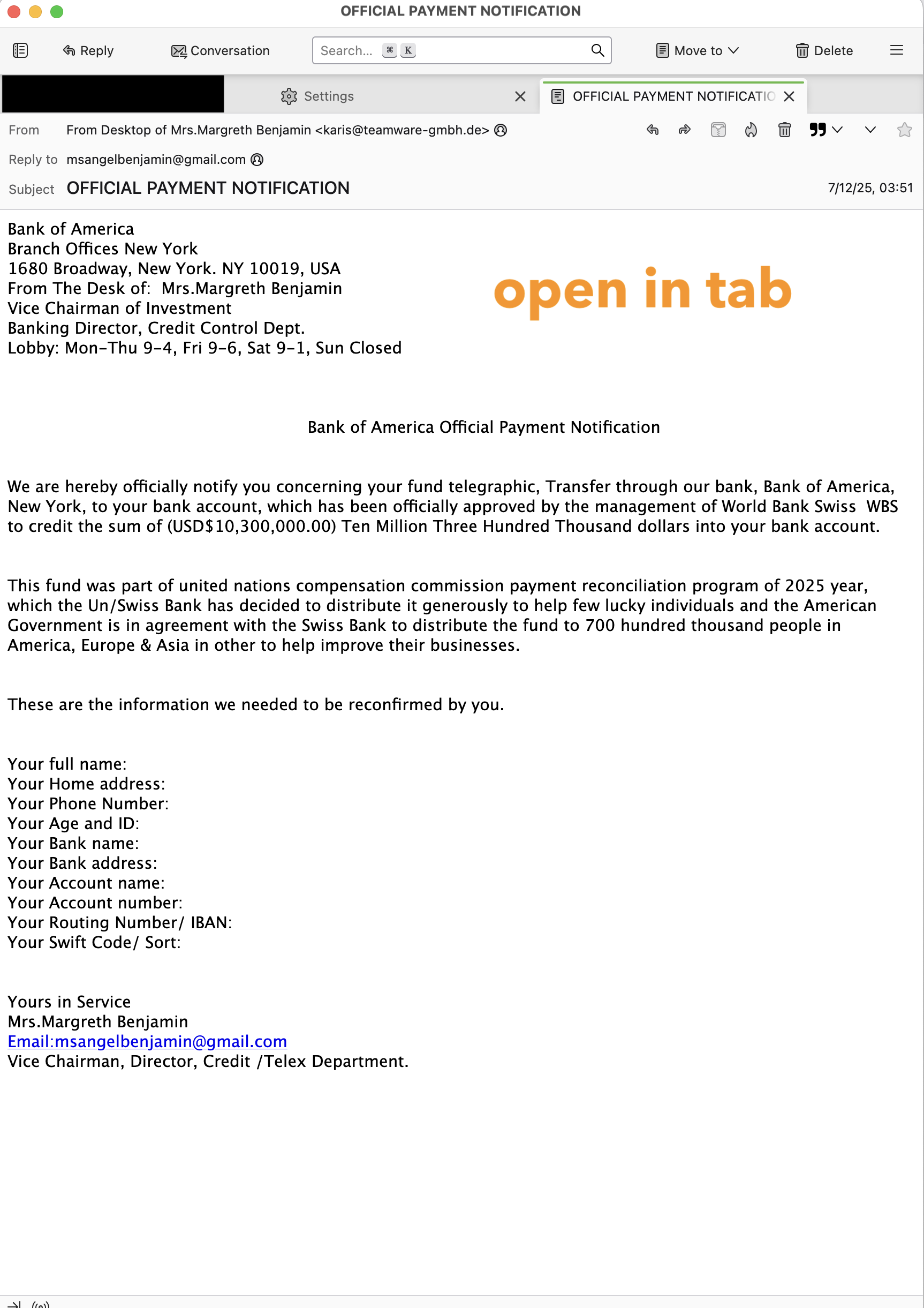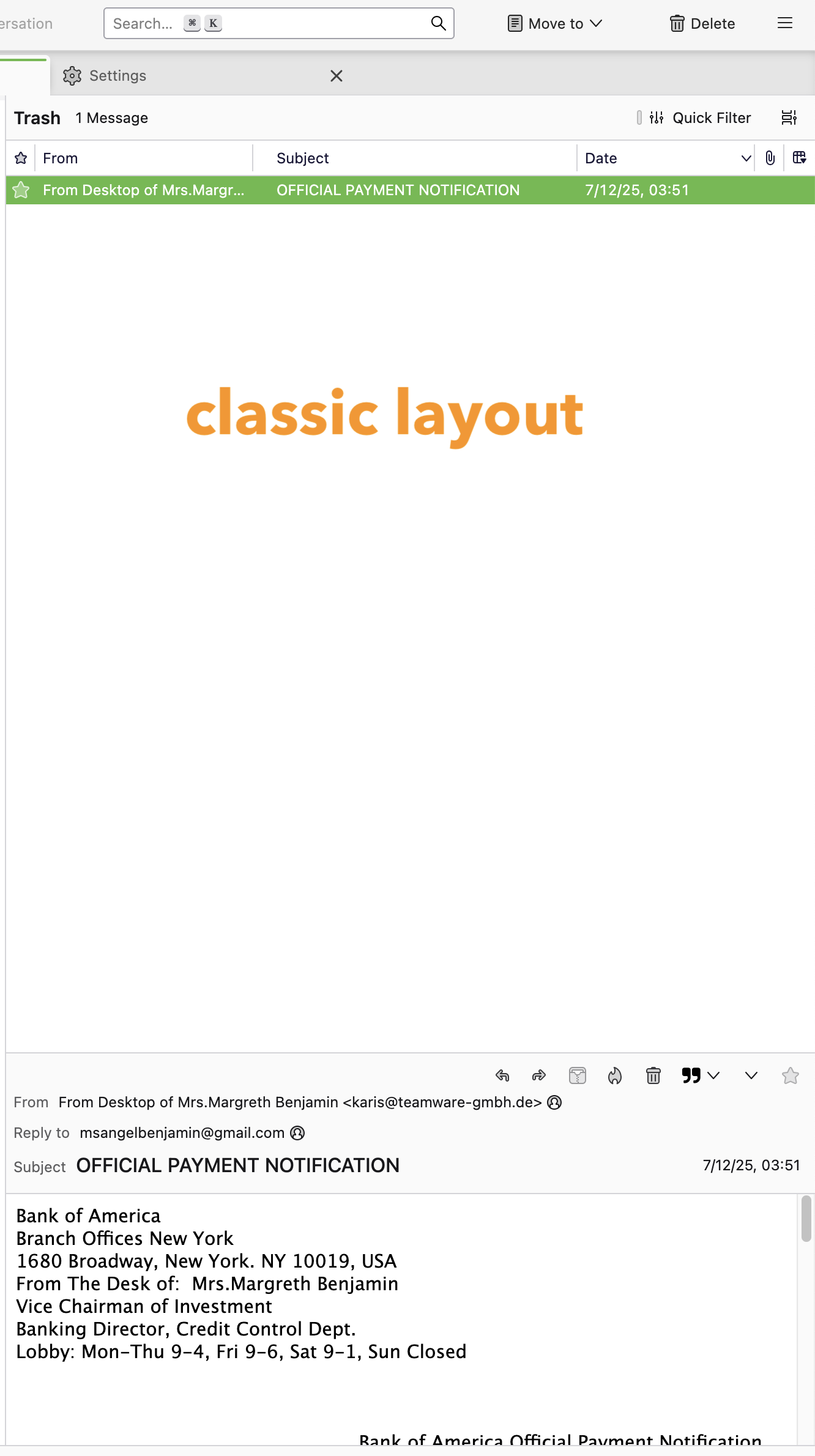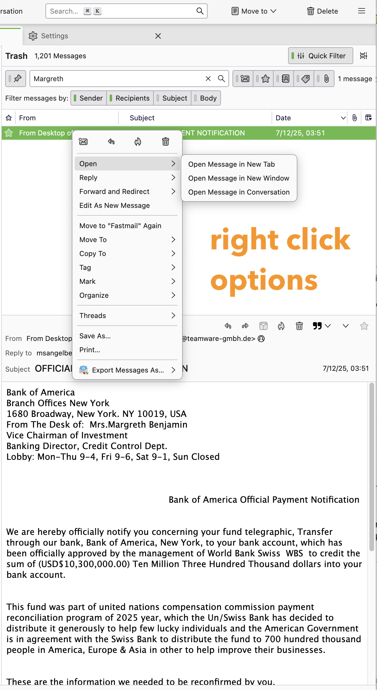 Now once you close the message pane, double clicking on a message will open it in a new tab.