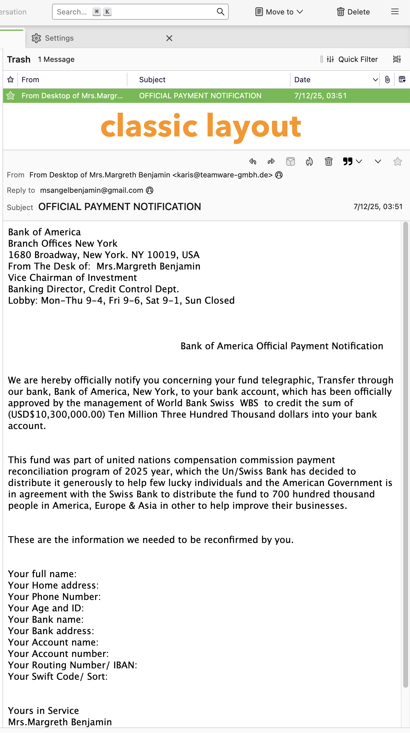 I am an older user and have used Thunderbird for a long time . When switched to Yahoo I still preferred the Thunderbird layout and continued to use it . My computer became like me , to old to be useful , so I purchased a new one . When I set it up and downloaded Thunderbird it came with the Yahoo format that I find hard to use . Enough BS and to my question , how can I return to the old format ? I have a Dell computer running Windows 11 .