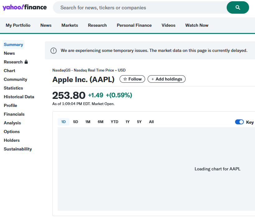 Thanks @t.r.ernst. Attached are screenshots of https://finance.yahoo.com/quote/AAPL/ in Firefox and Edge for comparison.