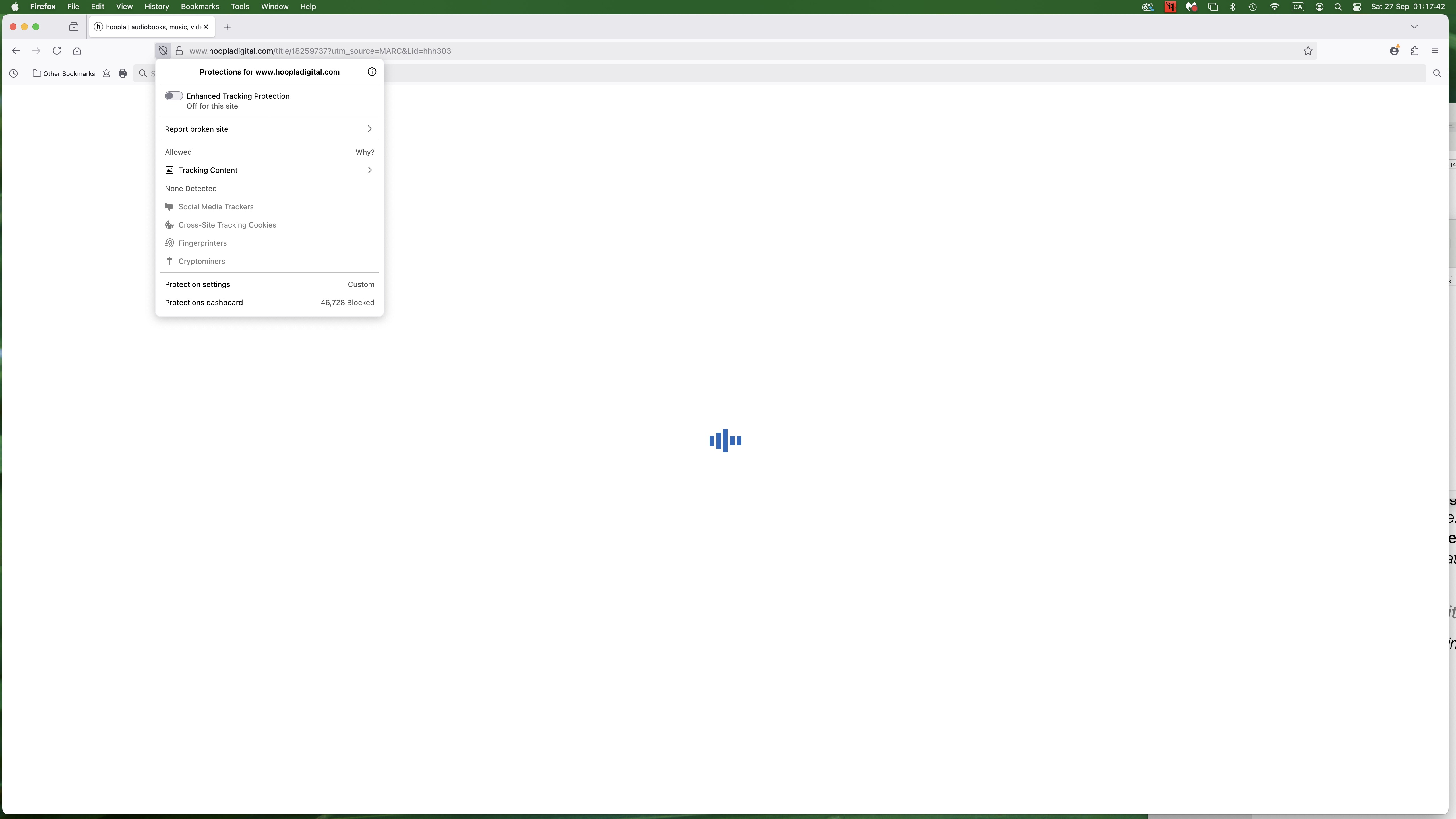 I have iMac desktop computer made in 2017, with macOS VENTURA 13.7.1. Using public library account in Toronto, Canada I watch digital materials (movies) on my computer. My default browser is FIREFOX 143.0.1 but with it I can't get access to hoopladigital.com; if I use SAFARI as a browser I can get access, login and watch movies. I would like just to know if there is anything in the settings of the FIREFOX browser that has to be changed so that I can use my preferable browser? Thank you.