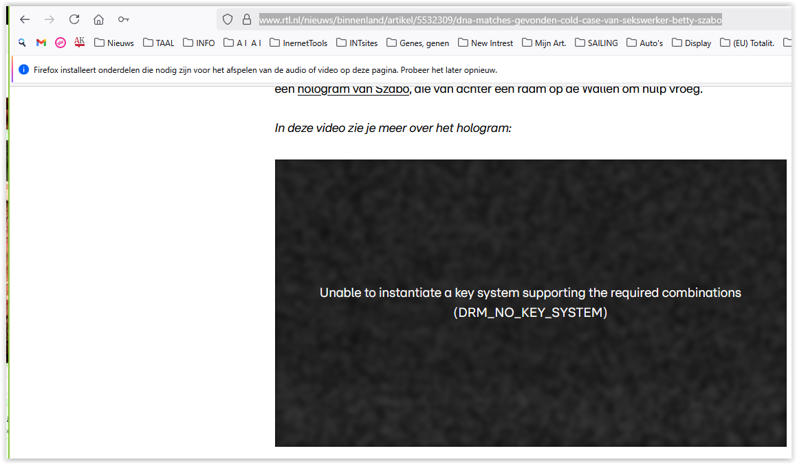 Ik krijg de melding: Firerfox installeert onderdelen die nodig zijn voor het afspelen van de audio of video op deze pagina. Probeer het later opnieuw.