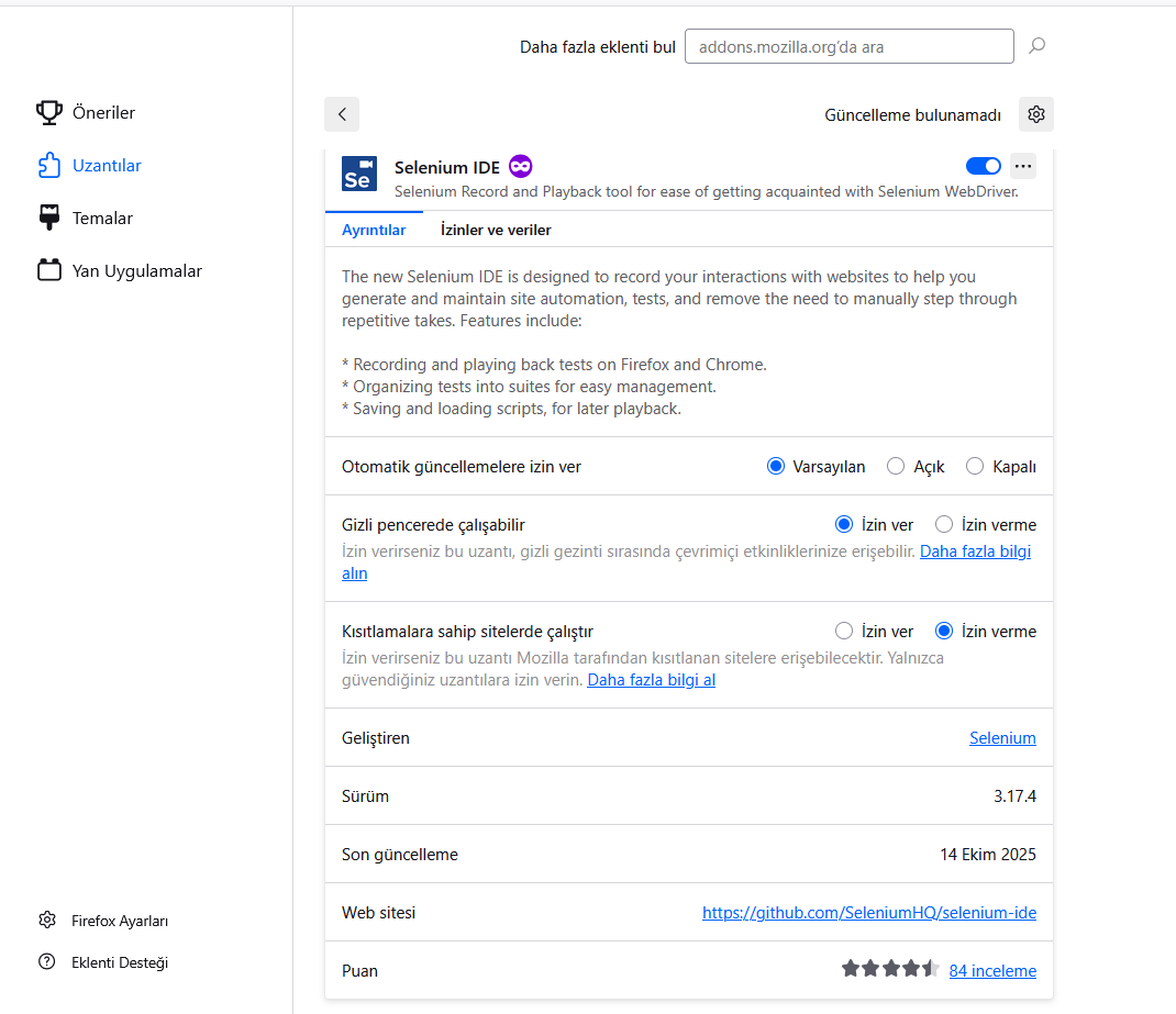 I use the Selenium IDE plugin for my job about 1 year. But yesterday I encountered a problem. I saved the project I was working on and left work on Friday(10.10.2025). And for a year, I kept saving it to my desktop. Yesterday(13.10.2025) morning I restarted my computer because it was running very slow. When I turned on the computer, I saw that the Selenium IDE project file I was working on was missing. I say "lost" because when I had it checked by the system team at the company I work for, it didn't appear to have been deleted. Also, I don't have any files with the ".side" extension in the recycle bin. I tried to find it with programs like Recuva and Everything, but it is not found. This is a very important file for me and my work. Can you help me please?