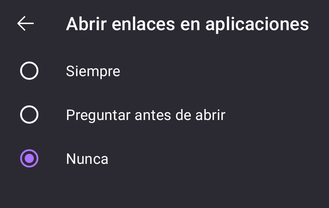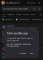 Tengo configurado tanto en Android como en Firefox NO abrir enlaces en aplicaciones, sin embargo, al hacer clic en algún enlace de Facebook me aparece el diálogo "¿Te gustaría dejar Firefox para ver este contenido?".